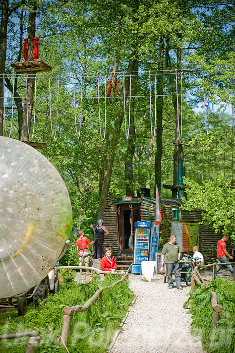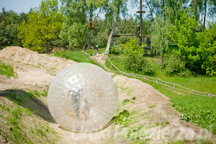 Do zjazdu przygotowano specjalną ok. 150 m trasę, poprowadzoną ze wzniesienia gdzie zaczynają się trasy linowe, aż do dolnego placu Parku w pobliżu kasy i punktu gastronomicznego. Pomysłowo przygotowane zakręty obrócą kulą kilka razy, a przypięty w środku pasażer poczuje się prawie jak w pralce. Zorbing doskonale nadaje się do przeprowadzania imprez integrujących grupy.