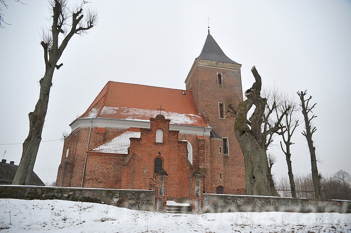 Obecnie jest to jeden z najcenniejszych zabytków Pojezierza. Budowla w stylu gotyckim, z czerwonej cegły, jednonawowa zamknięta wielobocznym prezbiterium. Od strony zachodniej przylega do niej, pokaźnych rozmiarów, wieża. Z czasem dobudowano pomieszczenie zakrystii oraz kaplicy. Nietynkowane, ceglane ściany, ostrołukowe otwory okienne nadają wnętrzu świątyni niepowtarzalny charakter.